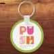 Girly PUSH - Pray Until Something Happens keychain with a colorful orange and pink PUSH with simple daisies.