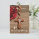 A wooden rosary crucifix is seen next to a beautiful red rose. Handsome card to celebrate with a priest on his 1st Anniversary of Ordination.. At the 3.5 x 5 size, it will be a beautiful memento for everyone to celebrate an ordination anniversary—customizable name and date.