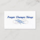 Christian business style card has a simple message to pass along to others: "Prayer Changes Things" on front with Philippians 4:6 Scripture on reverse. Can be handed to someone in need of prayer, enclosed in a greeting card, left with a tip in a restaurant, and more. Use your imagination to pass along a message of hope.