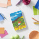 I was super excited when I got my cover in. It is attached by a magnet across the edge. I don’t think it will be very protective but it is very cute. I’m going to keep my iPad in a sleeve and use this face cover while I have it out. It folds to create a tilt for better viewing and to keep the iPad at a slight angle for typing. The colors are bright and it is fun. I’ve really enjoyed it. The personalization looks like amazing. It is the same color as the picture and is the same brightness. Well done! Very nice.