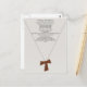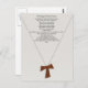 The Prayer of Saint Francis on a creme beige textured background and featuring a simple wooden cross on a plain chain. This simple prayer and cross is symbolic of poverty, humility and simplicity characterized by St. Francis of Assisi.