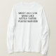 I love this shirt. I had written to the artist asking her if this picture was available on a shirt, and she wrote me back telling me where I could find the shirt. These shirts can be custom made to have a different saying. I loved this saying and went with it. The artist wrote me back later to tell me that she had seen my order go through. How's that for service? Pretty special. It's just as displayed. Perfect!