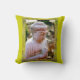 Chartreuse pillow features digital art design of a praying Buddha garden statue