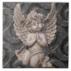 Praying Cherub Angel on Ornate Steel Background Ceramic Tile