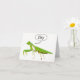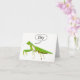 The Praying Mantis Says Hey notecard features a large green praying mantis with a cartoon bubble that says "Hey". The inside is blank.