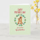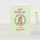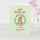 Designed with a calming pale green background, this card centers on a round floral wreath made of soft pink and light blue blossoms with leafy green sprigs. Inside the wreath, two stylized brown animals cuddle close, the larger one wrapping both arms around the smaller one in a protective, affectionate hold ❤️. Their faces are simple and sweet, with tiny black eyes and small noses that make their closeness feel gentle and trusting. Above the illustration, a greeting appears in red lettering near the top, standing out clearly against the light background. Beneath the wreath, a flowing red line of text sits lower on the page, addressing a grandmother in a warm, direct way 🌼. The earthy brown fur tones balance nicely with the pastel flowers and fresh greens around them. The wreath is circular and evenly spaced, with petals and leaves alternating all the way around the hugging pair.