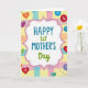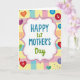 This card features a sweet first Mother’s Day theme centered on an ornate white frame edged with soft pink scallops and tiny dotted details. Inside the frame, the text “HAPPY 1st MOTHER’S Day” sits neatly in the middle, with “HAPPY” and “MOTHER’S Day” in teal blue and the “1st” in fresh green for a little extra emphasis ❤️. Behind it, a translucent plaid of pastel stripes crosses in pale yellow, gentle pink, baby blue, and light orange, giving the scene a soft, airy glow. Around the corners, folded paper-like hearts in deep purple, bright orange, red, and calm teal add a cozy, affectionate touch, like small love notes tucked into the design. Scattered nearby are round button shapes in red, blue, and purple, each with four stitching holes that suggest warmth and closeness without needing any characters. Tiny confetti-like speckles dot the background, adding a light celebratory feel 🌼. The hearts and buttons sit near the edges while the framed message remains the clear focal point in the center against the pastel plaid backdrop.