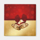 Elegant and unique Christmas illustration featuring 2 golden Christmas bells with red bow and ribbon on different backgrounds: a red bokeh background and a golden snowflakes background.