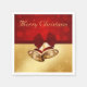 Elegant and unique Christmas illustration featuring 2 golden Christmas bells with red bow and ribbon on different backgrounds: a red bokeh background and a golden snowflakes background.