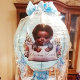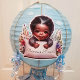 There nothing like the hands of a precious baby. This cute sticker has an African-American baby boy with his precious hands on a pillow. He has this round face with bright brown eyes and a adorable smile.