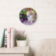 Precious Kittens Pink Purple Yellow Flowers Large Clock
