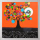 Colorful tree with love heart in trunk, with full moon and dotted art