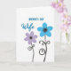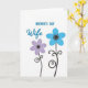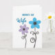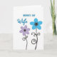This design shows two stylized flowers on a white background, drawn with simple lines that feel calm and affectionate ❤️. On the left, a five-petal blossom in soft lavender has a dark round center sprinkled with tiny dots, like it’s gazing quietly toward its companion. A slim dark stem holds it up and ends in a small curled flourish, adding a gentle, romantic touch. On the right, a matching five-petal flower in bright blue echoes the same dotted center, creating a paired look that suggests closeness. Its dark stem extends into a few decorative spirals near the bottom, like a graceful little dance between the two blooms 🌼. Near the top, the words “MOTHER’S DAY” sit in uppercase blue lettering, centered above the flowers. Just beneath that, “Wife” appears in flowing blue lettering, placed above the blossoms so the dedication feels closely tied to the artwork. The two flowers stand side by side with lavender on the left and blue on the right, each with a dotted dark center and curling stem details.