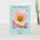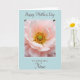This greeting card features a close-up flower with many soft blush-pink petals that curl outward like a gentle embrace, suggesting a quiet closeness like friends leaning in for a hug ❤️. Light catches the petal edges, making them look slightly translucent, and the center warms into creamy gold. In the middle, a bright green pistil sits surrounded by a tight ring of golden-yellow anthers, each tipped with tiny dark accents that add crisp contrast. The floral image is contained within a neat white border, set against a wide light blue background that feels like open spring air 🌼. Near the top, the words “Happy Mother’s Day” are placed above the framed picture in dark, flowing lettering. Near the bottom, “TO A BEAUTIFUL Niece,” appears below the frame in matching dark text, aligned to read clearly and evenly. The flower’s center shows chartreuse green surrounded by yellow with specks of near-black, all against the pale pink petals and sky-blue backdrop.