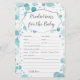 This baby shower card features a script modern font on baby blue dots background, perfect for a baby boy shower party! For more funny and unique games and cards, please check the collection below.