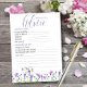 Predictions and Advice sheet to suit wildflower baby shower, girl or summer floral theme. Fun activity to involve guests at your baby shower, with words of wisdom for the parents to be. Delicate and feminine botanical design is hand lettered with "advice" in elegant script calligraphy. It has a pretty border of watercolor wild flowers in shades of lilac, lavender, purple, pink and blue. A dainty modern floral with girly, bohemian cottage garden theme. Please see my Purple Wildflower collection for matching items or, message me to create the templates you need.