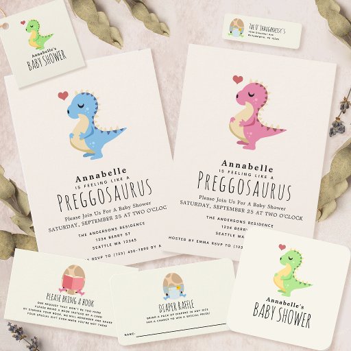We absolutely do! We have a wide variety of supplies that you can purchase to match your Preggosaurus Cute Funny Dinosaur Baby Girl Shower Invitation.