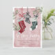 Announce the arrival of your new baby this Christmas season with our beautiful and festive Christmas pregnancy announcement holiday card. Our design features our hand-painted watercolor plaid pattern hanging Christmas stockings in red, green, and black. Each of the Christmas stockings is customized with the parent's name. The middle black plaid stocking is written with "Baby" to announce the arrival of your newest family member. "So Very Merry" is displayed in stylish white calligraphy. Customize with your baby's name and arrival date, along with greeting and parent's name. The reverse side features our watercolor-painted festive wreath with the baby's stocking hanging in the middle and customized with the baby's monogram. This is a unique memorable holiday card to send to your family and friends to announce your baby's arrival this holiday season.