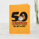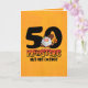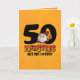 Funny 50th birthday design with smiling cartoon caveman holding a club and torch. Text says 50 PREHISTORIC BUT NOT EXTINCT. Distressed background. Personalize it with your own custom text. PinkInkArt original!