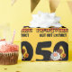 Funny 50th birthday design with smiling cartoon caveman holding a club and torch. Text says 50 PREHISTORIC BUT NOT EXTINCT. Personalize it with your own custom text. PinkInkArt original!