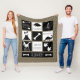 Prehistoric dino bones background with black and white dinosaur silhouettes, bones, volcano, and shovels. This blanket also features your personalized name in white letters.