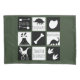 Prehistoric dinosaurs themed pillow case in black and white silhouettes over dark green.