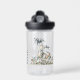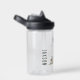 Prehistoric Dinosaur Scene, personalized water bottle. Features, template text line for name in coordinating green color.