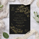 Premium Black Real Gold Floral Hand Drawn Wedding Foil Invitation