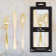 Gold cutlery set is a great option for weddings, holiday parties, business events, and special occasions. Elegant tableware shown in metallic gold. Plastic cutlery set is a great coordinate item to the party supplies from the Romantic Swan design collection.