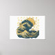 blue golden japanese wave wall art canvas print