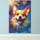 Premium Wrapped Canvas with Joyful & Playful Corgi Surrounded by Colorful & Vibrant Fireworks