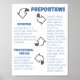 Handy reference poster with prepositions for beginner grammar students and teachers. The Homeschooling Dad's classroom posters series, 5 of 6.