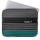 A preppy mens fashion 15 inch laptop sleeve with fresh teal and black stripes on the bottom and a trendy black and grey striped pattern on the rest of the case. Personalize by adding your name to this modern contemporary style mobile device sleeve.