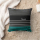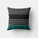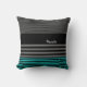 A preppy mens fashion pillow with fresh teal and black stripes on the bottom and a trendy black and grey striped pattern on the rest of the pillow. Personalize by adding your name to this modern contemporary style deco pillow.