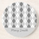 Preppy Argyle Custom Name Gray Pattern Drink Coaster