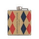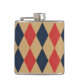 Preppy Argyle Khaki Navy Red Personalized Flask