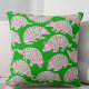 A green pillow with playful illustrations of pink and green preppy armadillos. The bright green fabric and the lively, preppy armadillos create a whimsical and fun atmosphere, perfect for a summer home decor!