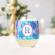 Preppy Beach Pink Crabs Shells Monogram Stemless Wine Glass