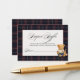 Add preppy charm to your celebration with our Bear Diaper Raffle Card. Featuring a teddy bear in a vintage baseball uniform with bat and ball, set against a navy background with red-and-blue Scottish tartan border. Elegant calligraphy and classic serif fonts make this card a polished detail for tucking into invitations or displaying at your gift table.