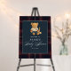 Welcome guests in style with our Bear Baby Shower Foam Board Sign. Featuring a teddy bear in a vintage baseball uniform with bat and ball, framed by a navy background and red-and-blue Scottish tartan border. Elegant calligraphy and classic serif fonts create a timeless, preppy look — perfect for entryways, gift tables, or photo backdrops.