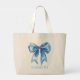 Preppy Blue and White Bow Personalized Large Tote Bag