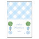 This is an elegant and economical option for individual personalized place cards. This design is sold as a 3.5x5 inches flat card that you will need to fold (or score and fold) in half yourself to make individual place cards with a folded size of 3.5x2.5 inches. This classic design features a watercolor boxwood topiary ball decorated with a light blue bow and situated in a Ginger Jar planter. On the reverse is a pale blue and white gingham check.