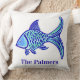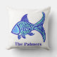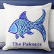 Preppy Blue Fish Throw Pillow