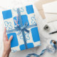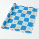 Preppy Blue Flower Checkered Pattern Wrapping Paper