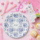 Preppy Blue Toile Hydrangea Bow with Name Paper Plates