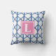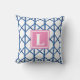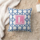 Preppy Blue Trellis Bamboo Pattern Monogram Throw Pillow