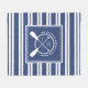 Preppy blanket in blue and white for your lake house. Add your family name, initial, and the year established to a nautical monogram of crossed paddles over a rope circle. The blanket also features stripes.
