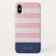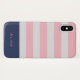 Preppy iPhone case with blush and white stripes, on the bottom a navy blue border as a monogram holder. Personalize with your very own monogram in elegant sans serif font and choose between two colors. This phone case can be paired with other accessories so check out our store for more items from our ''Nautical Stripes'' collection.