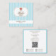 Preppy Brown & Blue Stripes Bakery Logo QR Code Square Business Card