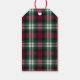 This design is a tartan or plaid pattern featuring a festive color palette, primarily consisting of cheery red, deep forest green and navy blue, overlaid with thin intersecting lines of white and gold. The overall effect is sophisticated and traditional, with the dark greens and reds making it highly suitable for use as Christmas wrapping paper, offering a classic and subtly festive aesthetic.